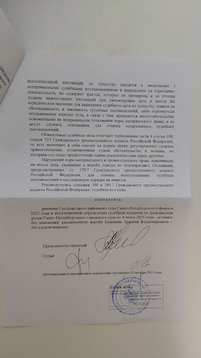 От Истца по делам №2-165/2025, №33-12288/2025 и №88-15220/2025 гражданина РФ Каменева Арсения Владимировича (данные истца)