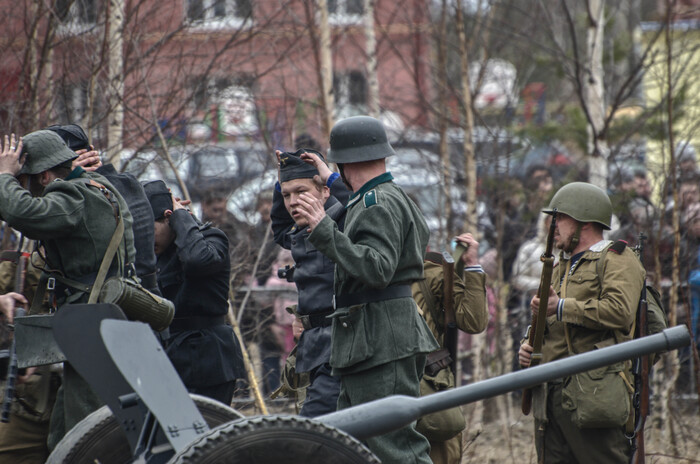 К 9-му мая администрация города решила организовать нам вот такую военно-патриотическую реконструкцию.