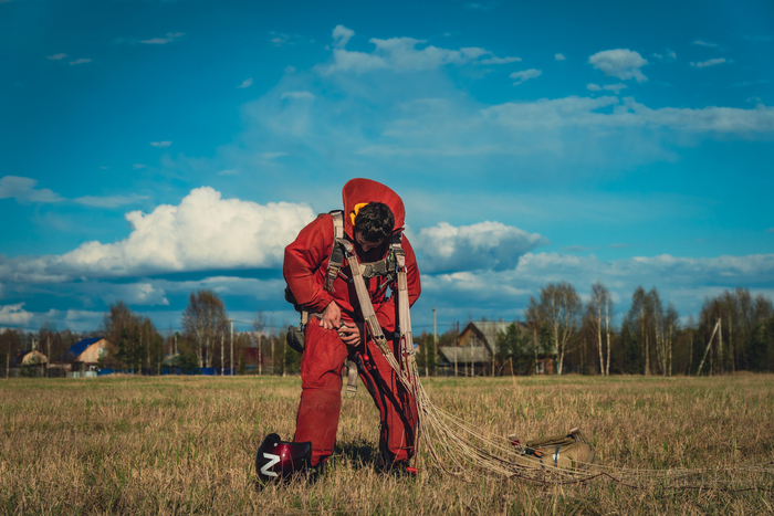 на площадке приземления. костюм СПП-3, парашютная система ПТЛ-72