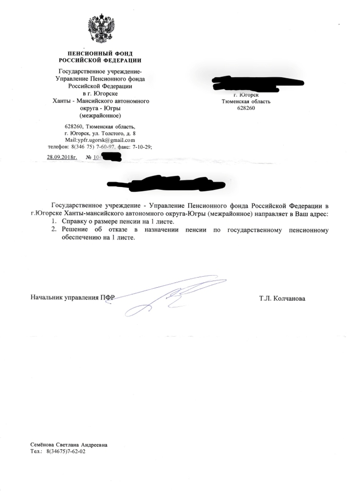 Прошу помощи Юристов! Непонятки с Пенсионным Фондом Югорска ХМАО-Югра Директор Колчанова Татьяна Леонидовна