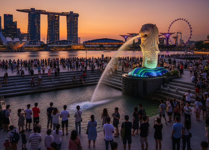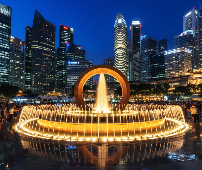 Ночь в Сингапуре не была темной. Город освящали тысячи огней. Я растворился в этом потоке, двигаясь без цели, позволяя ногам самим выбирать направление. Шумной толпой меня принесло к обширной площади, где в центре высилась гигантская бронзовая конструкция. Это был знаменитый Фонтан Богатства.