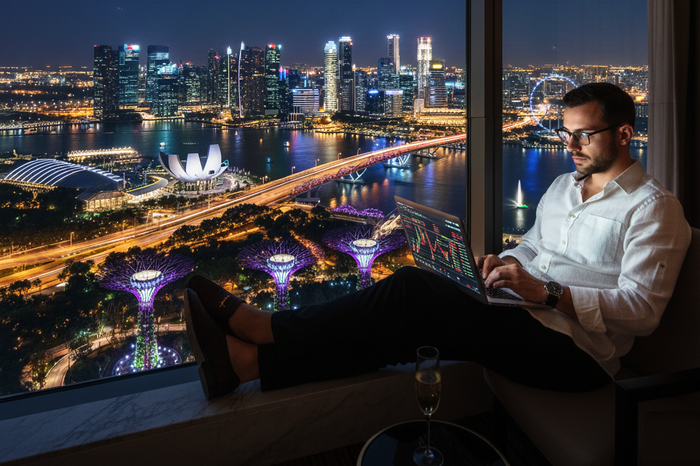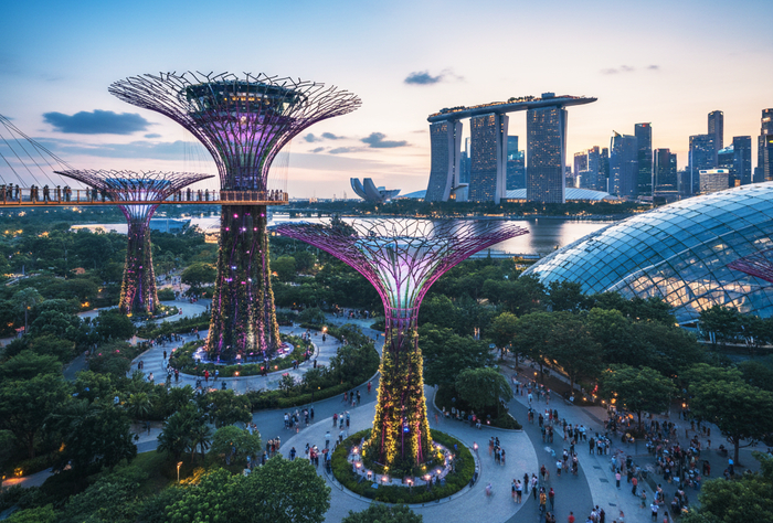 Когда фонтан запустили вновь и мощные струи взметнулись вверх, подсвеченные огнями, я медленно пошёл дальше, оставив шум толпы позади и вышел к набережной Марина-Бэй. Здесь, под тёмным бархатным небом, сиял футуристический силуэт города-сада. Воздух был тёплым и в нём витало чувство, которое я осознал не сразу. Это была абсолютная стопроцентная безопасность.