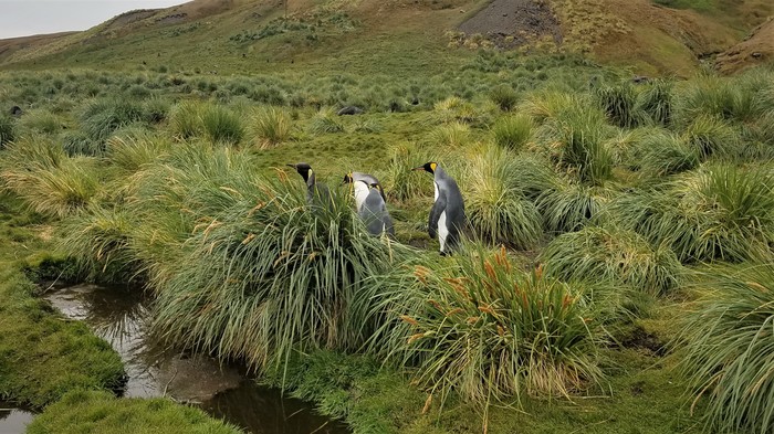 На острове полно живности. Самые яркие - Королевские пингвины.