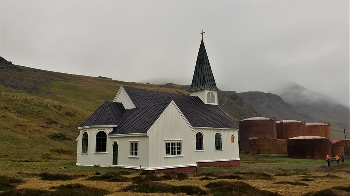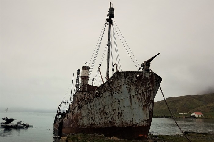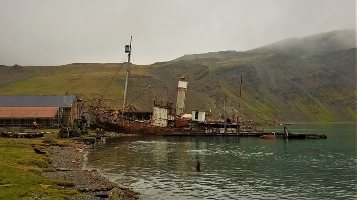 Заброшенная китобойная база Грютвикен ныне частично реставрированная в туристическх целях.