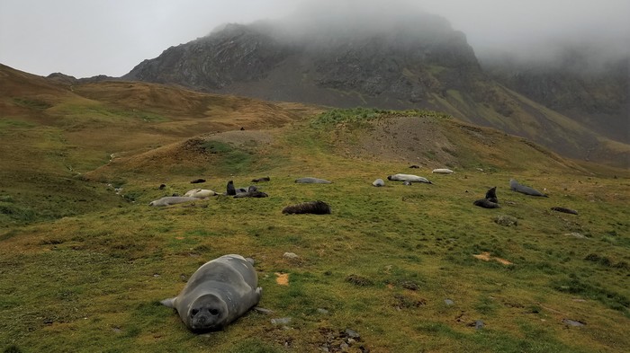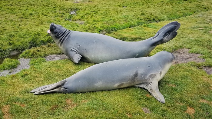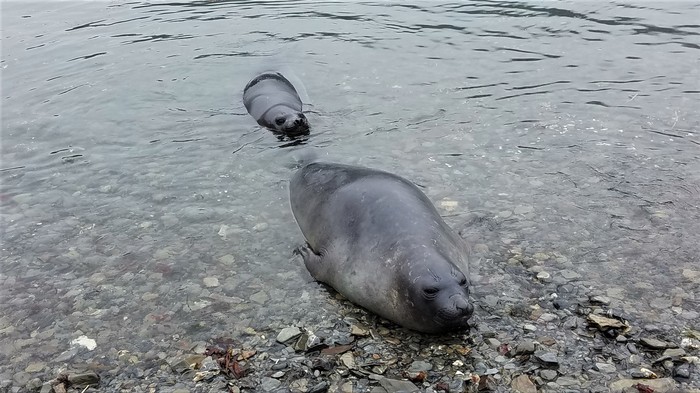 Слоны и пингвины очень спокойны, но не котики. Мы забрали кусок пляжа, для высадки, некоторых это не устраивает. Особенно молодых самцов которые остались без самок.