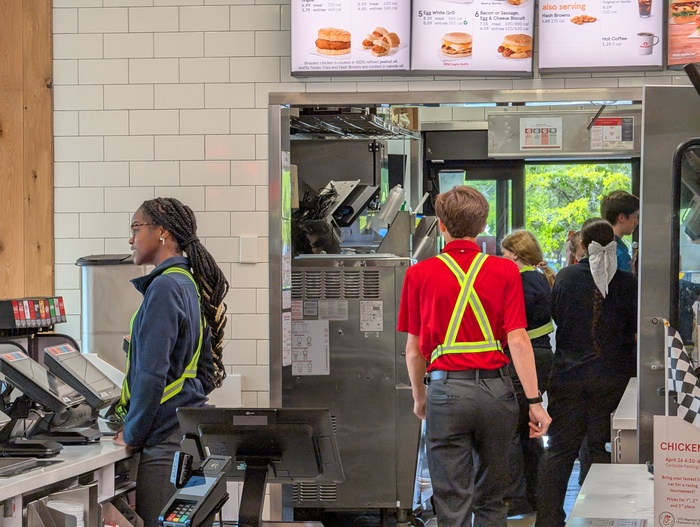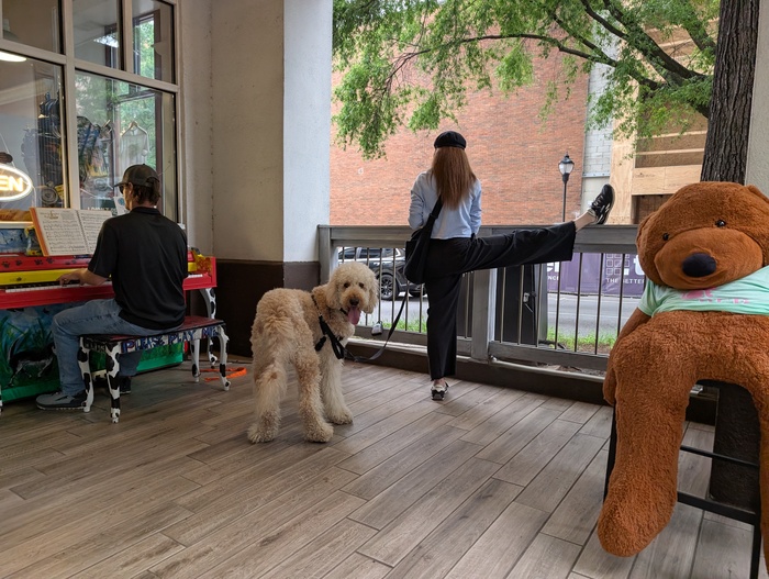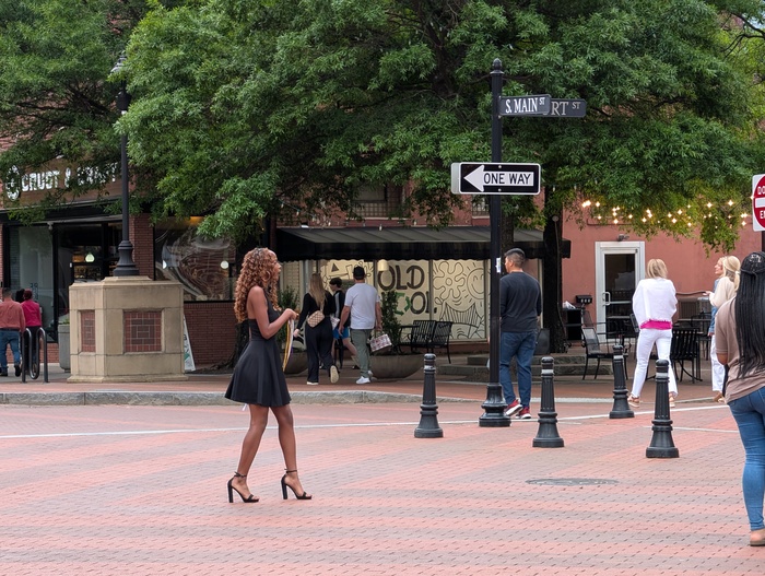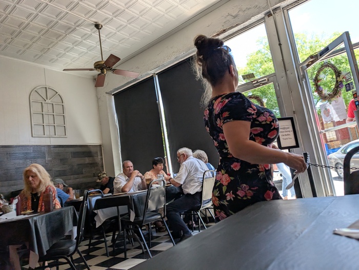 На улице живая музыка (Джонни Кэш), и живая официантка. Прям напомнила мне Ольгу с Новчика. Один в один.