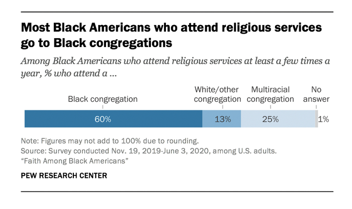 Притом, большинство чернокожих (60%) ходят в церковь для черных: