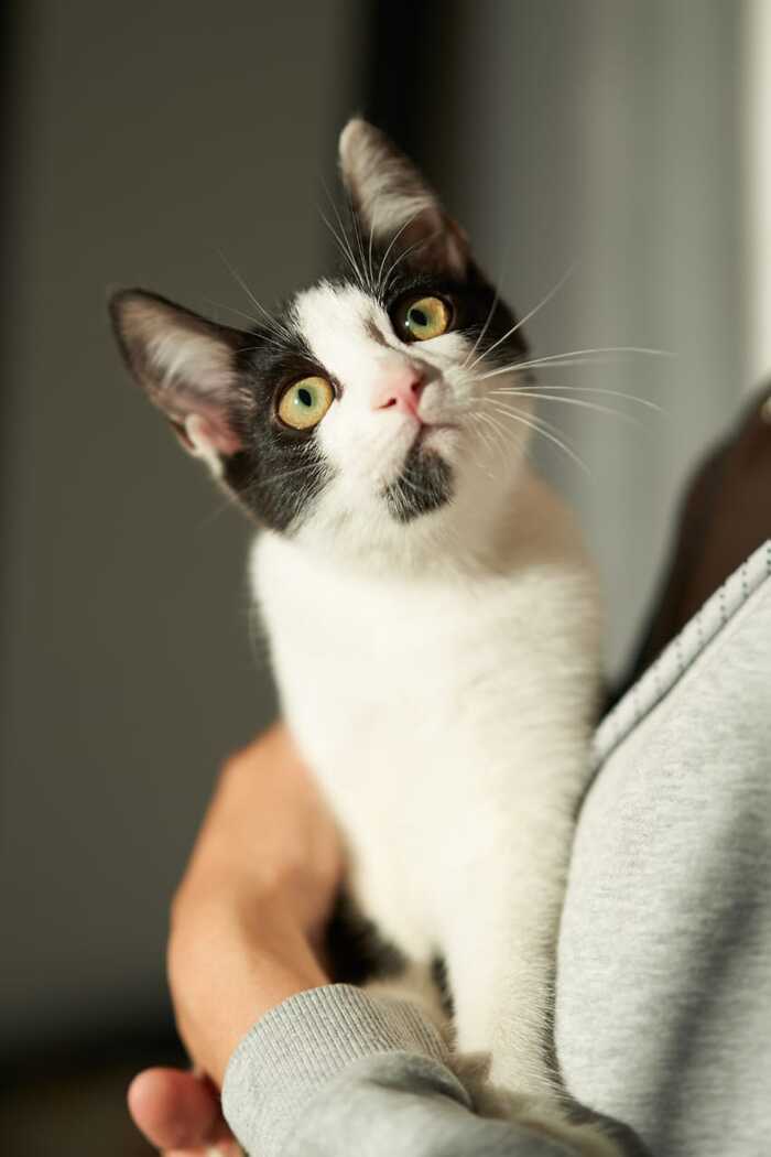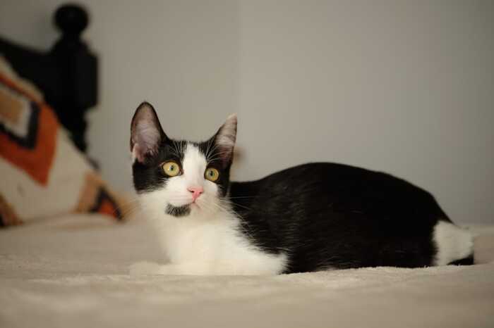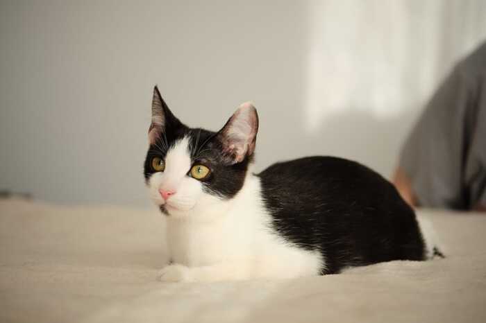 Черно-белый котенок Котя ищет дом, где его будут любить и заботиться о нем, как о члене семьи.
