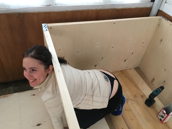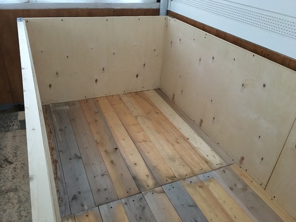 Далее добавлю вход-выход с щеколдой. А когда щенков распродадим сделаю крышу, утеплю. Будет жильё для одной из собак на зиму.