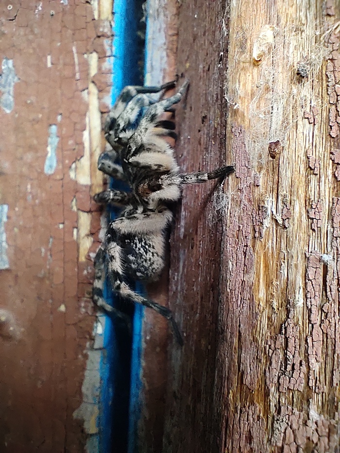 Впервые был замечен в конце февраля, видимо, в оттепель вылез на солнышке погреться, а потом сил не нашёл обратно спрятаться. Неделю, наверное, на двери сидел, вяло перемещаясь то повыше, то пониже. Красивые, заразы, но так близко знакомиться, как автор исходного поста, конечно, не хочется:D