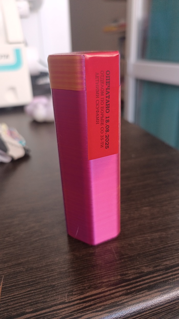 Как говорила Юлия Высоцкая,будем делать из того что есть на кухне у каждой домохозяйки. В данном случае :3Д принтер adventurer 5M, филамент silk pla фирмы conjure (red gold purple), скачиваем БЕСПЛАТНО модель с thingiverse, на клеюшуюся бумагу печатаем текст, ставим печать на 40 мин и ждем что получится