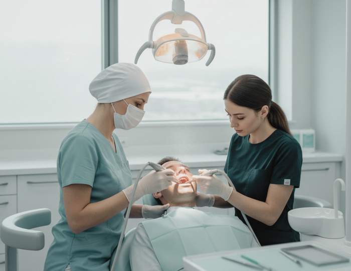 Со стороны красиво, гуманно, никаких разрезов, доктор-молодец. Иногда даже не надо делать анестезию, так как нерв в зубе сдох, при сверлении боли нет. Вот радость-то какая!