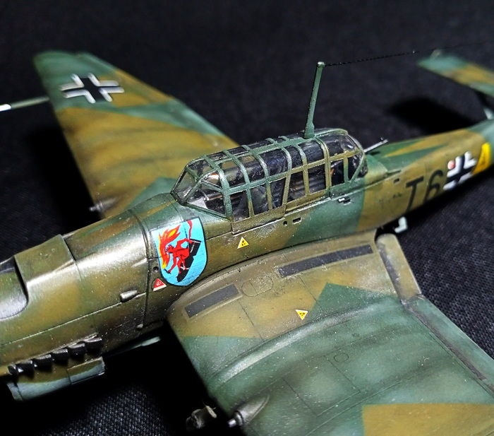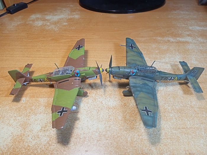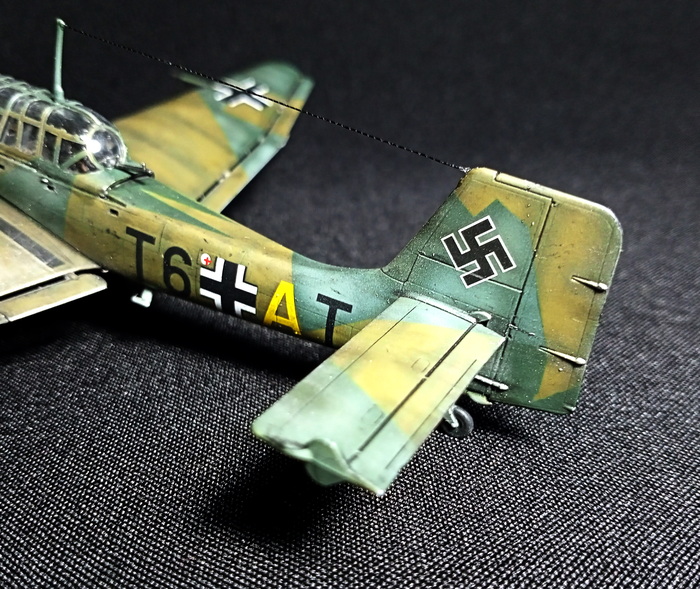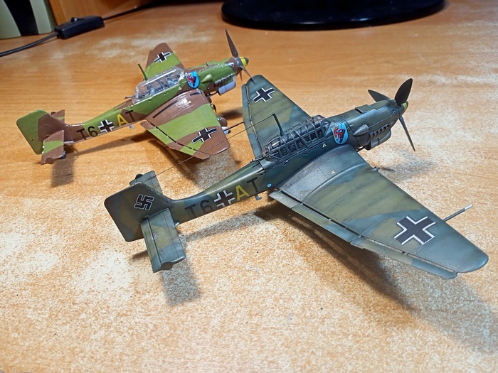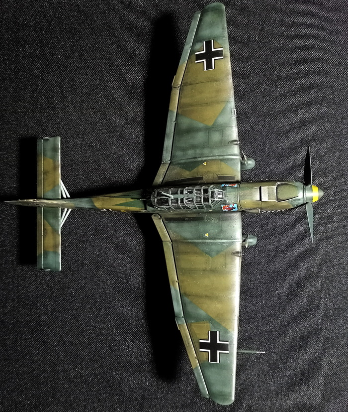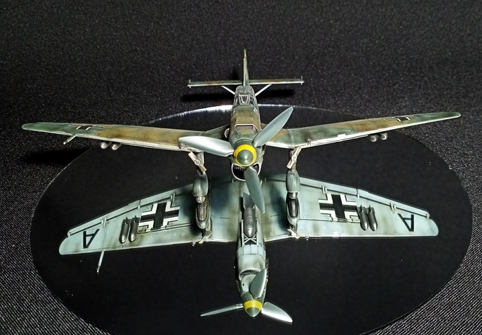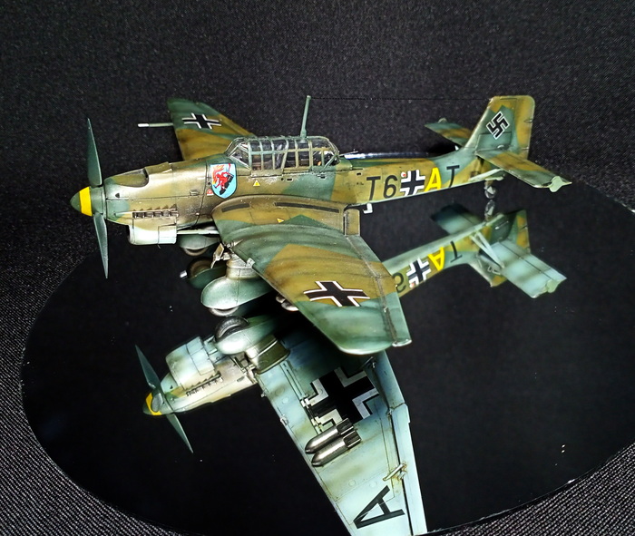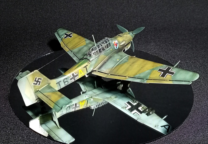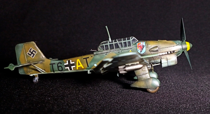 Представлена модель Junkers Ju.87B-2 Stuka из состава 9./St.G 2, Западная Европа, 1940 год. Самолёт несёт стандартную бомбовую нагрузку из 500-кг бомбы под фюзеляжем и четырёх 50-кг бомб под крылом. Модель фирмы «Звезда», масштаб 1/72.