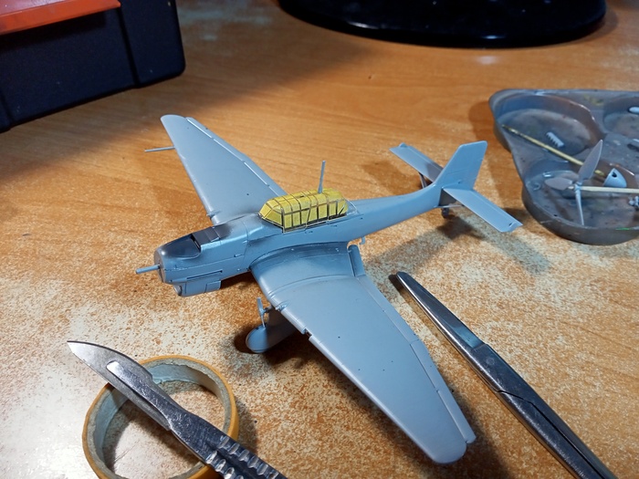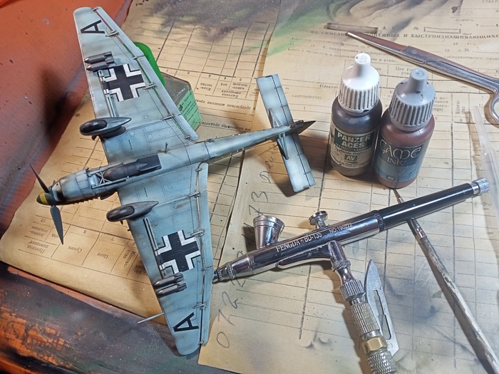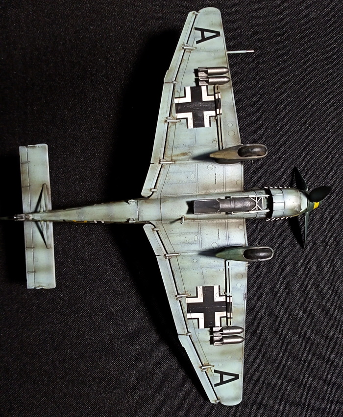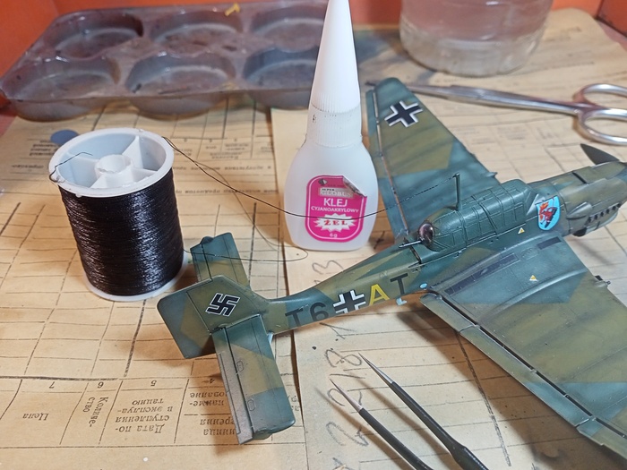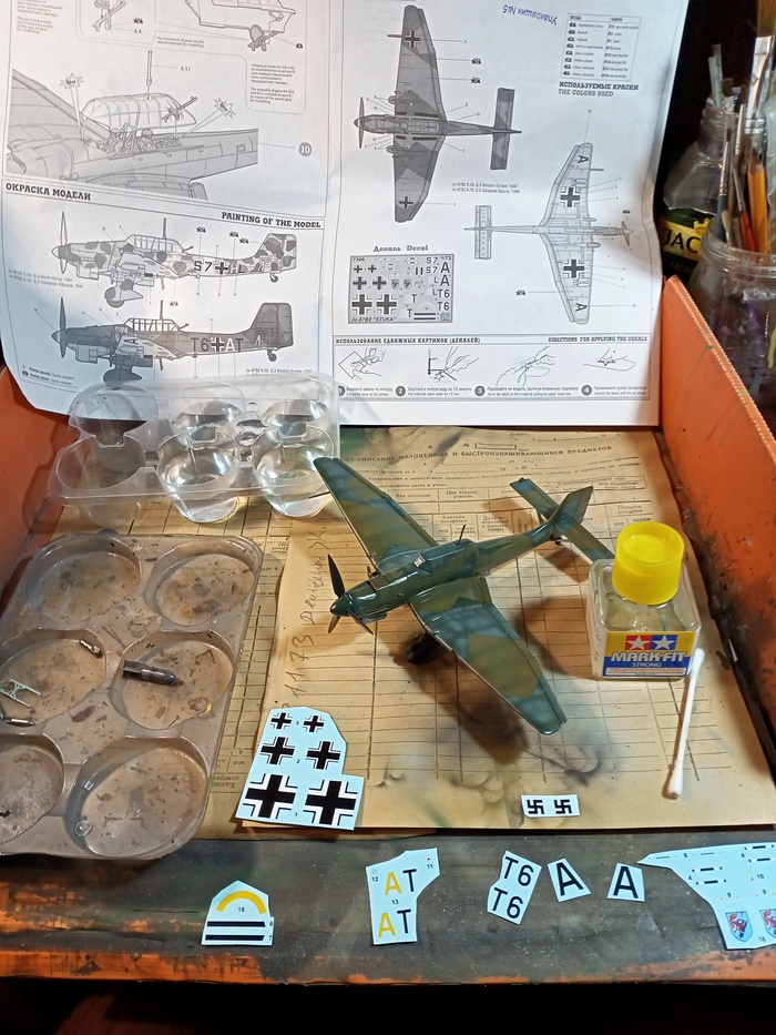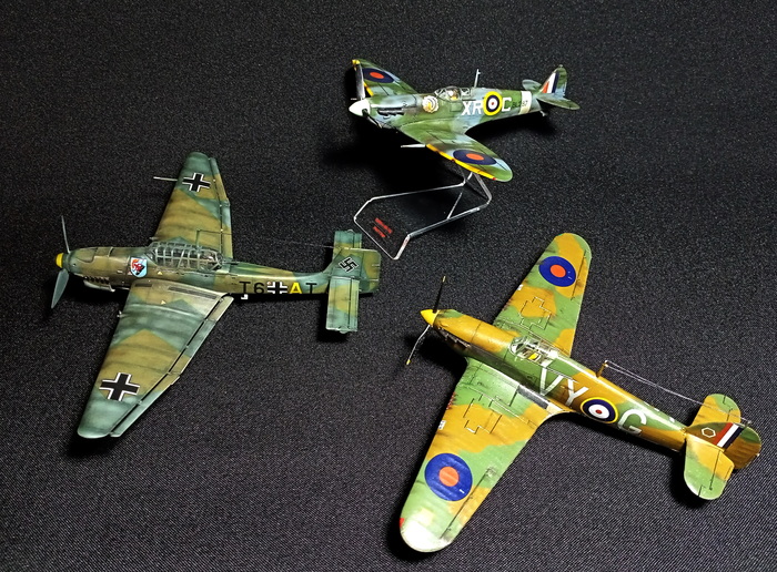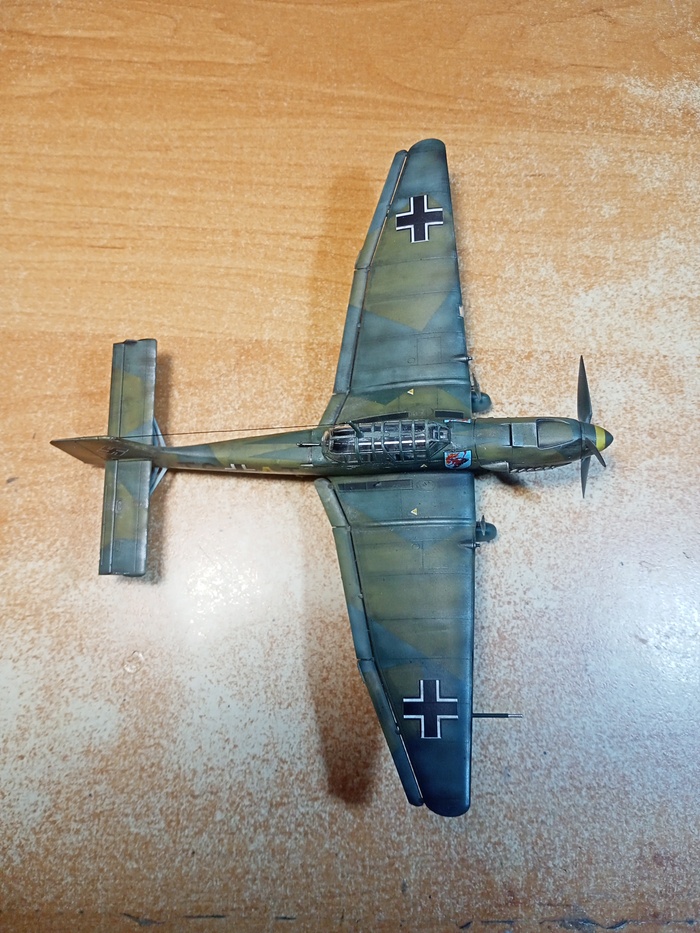 Представлена модель Junkers Ju.87B-2 Stuka из состава 9./St.G 2, Западная Европа, 1940 год. Самолёт несёт стандартную бомбовую нагрузку из 500-кг бомбы под фюзеляжем и четырёх 50-кг бомб под крылом. Модель фирмы «Звезда», масштаб 1/72.
