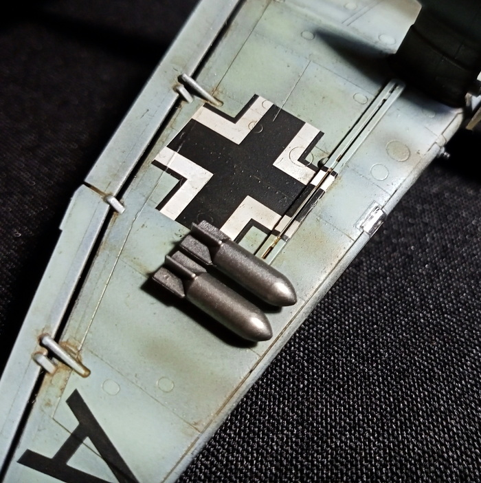 узлах подвески и достигала 1000 кг. На центральный подфюзеляжный бомбодержатель ETC 1000/500 могли подвешиваться три типа бомб: 250-кг SC/SD250, 500-кг SC/SD500 и 1000-кг SC/PC1000.