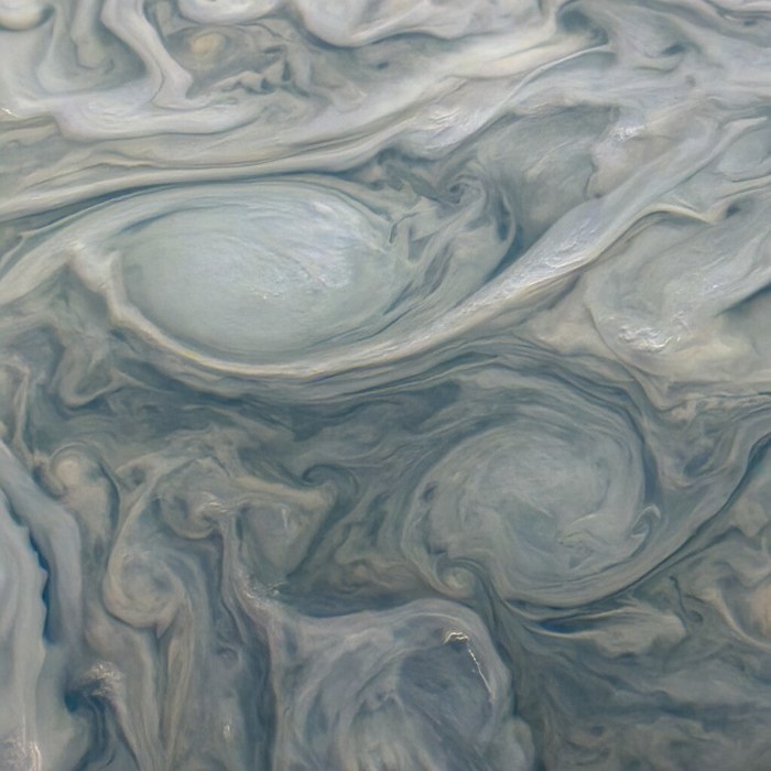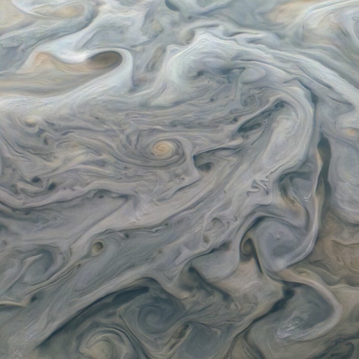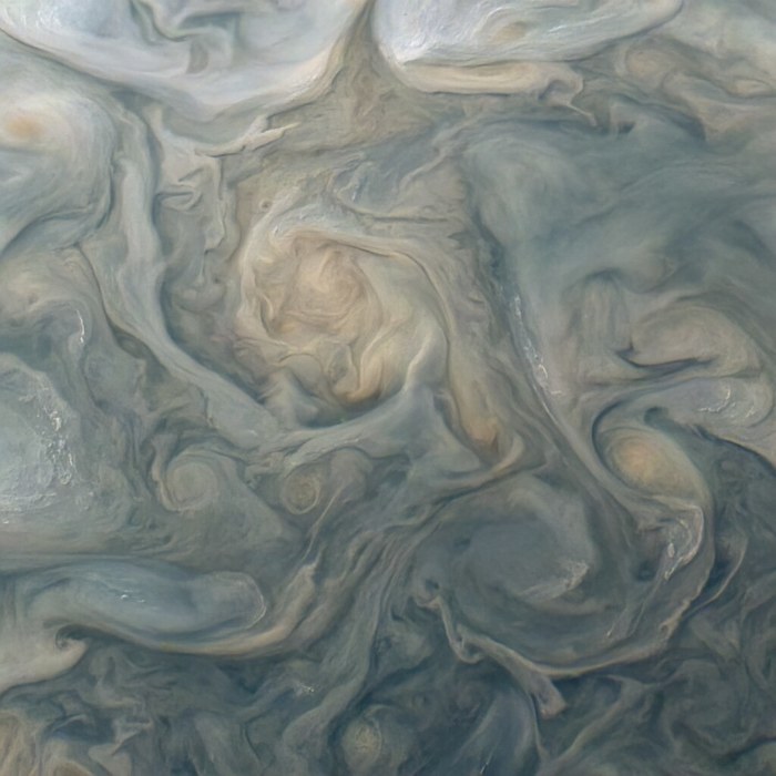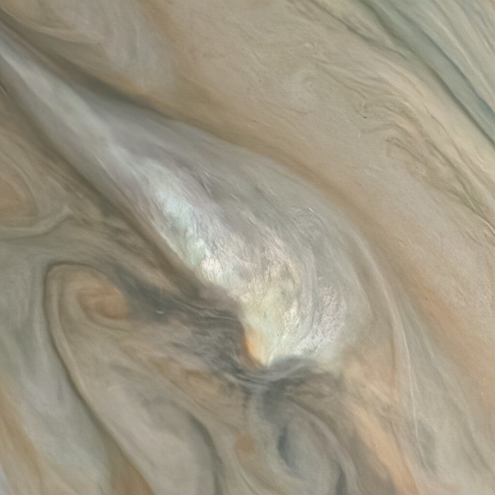 Результат снимка "Юноны", запечатлевший грозы и град в облаках Юпитера.