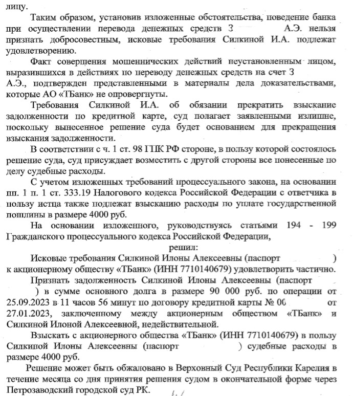 Суд вынес решение об удовлетворении исковых требований в полном объеме. Дальше была апелляция, кассация и даже жалоба в Верховный суд, но решение осталось в силе.