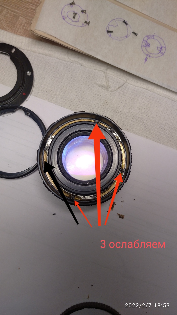 подтягиваем один винтик и проверяем фокусировку на бесконечности и других положениях.