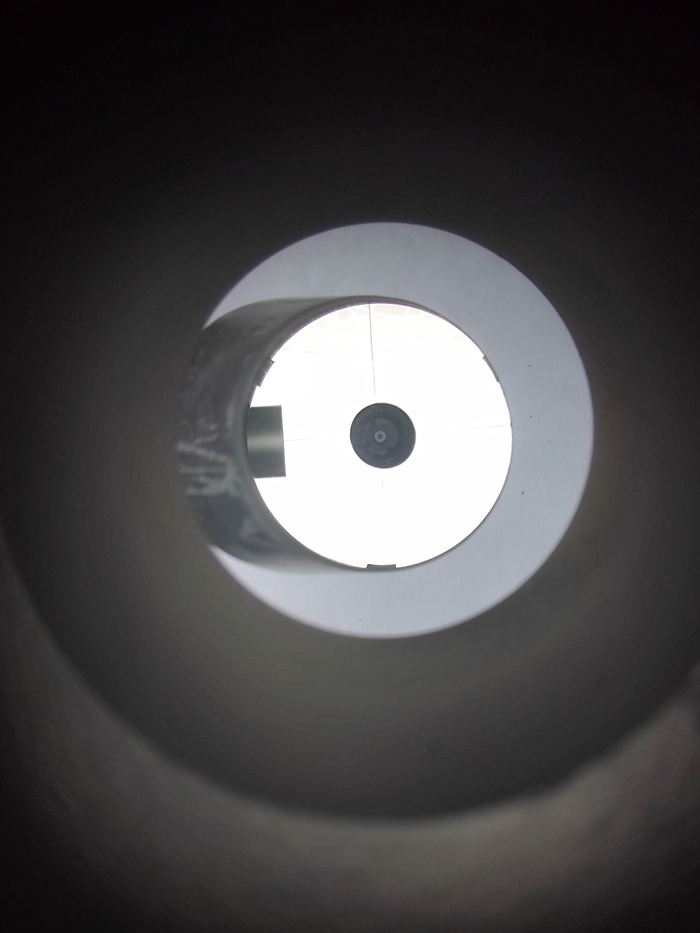 3. Первое что мы делаем это ставим заглушку с отверстием в фокусер и смотрим в отверстие. Винтами регулировки ДЗ добиваемся того, чтобы были равномерно видны все три лапки крепления главного зеркала (ГЗ) телескопа примерно вот так