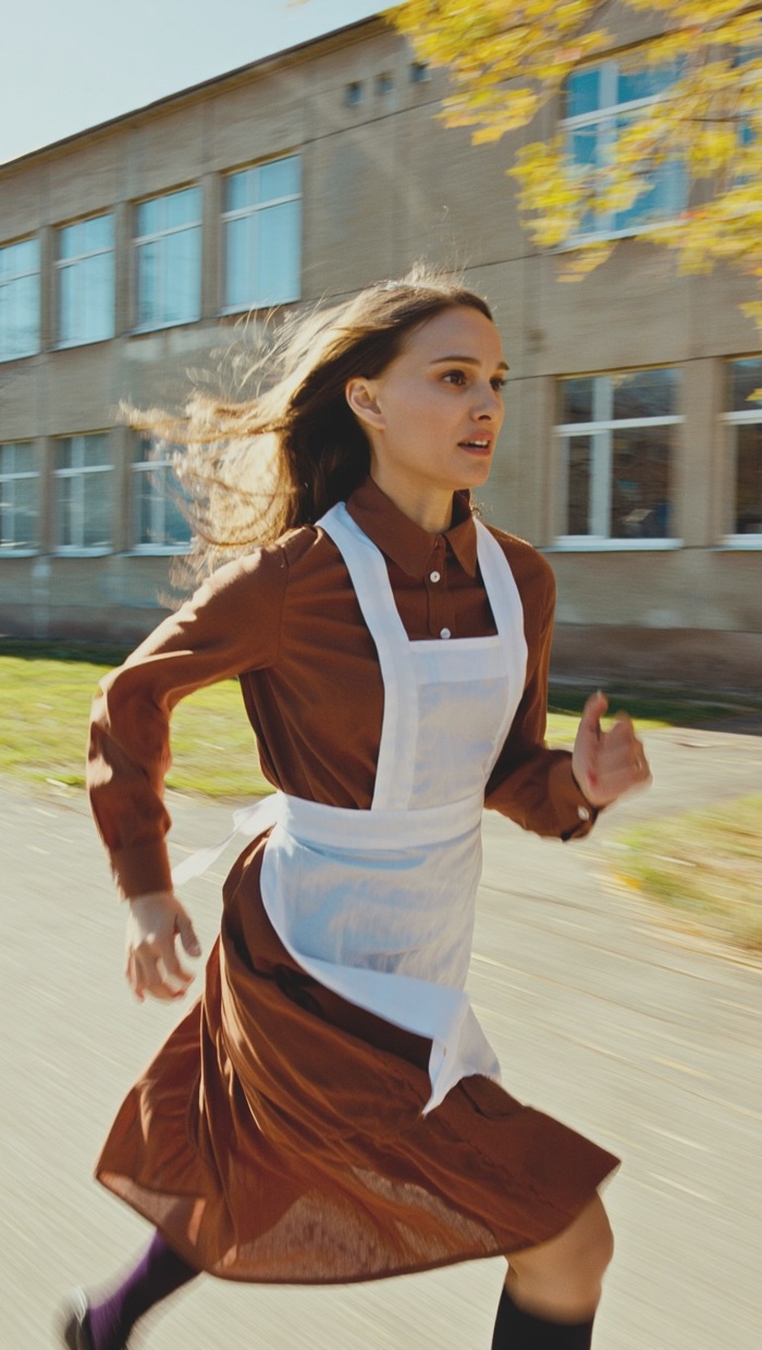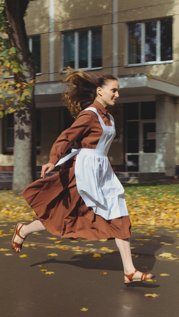Спортсменка и комсомолка Наталья Портнова, ученица 11"А" класса физико-математической гимназии, бежит на контрольную.