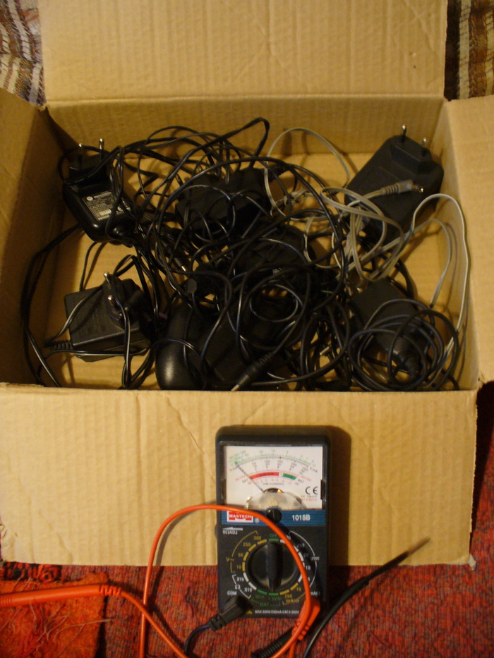 Так же есть в наличии несколько старых исправно работающих зарядок от телефона. Все от разных телефонов и, соответственно, с разным напряжением и прочими показателями.