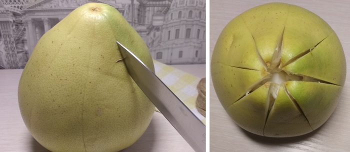 3. Раскрываем "лепестки", вынимаем фрукт.