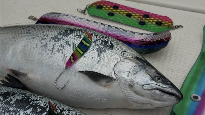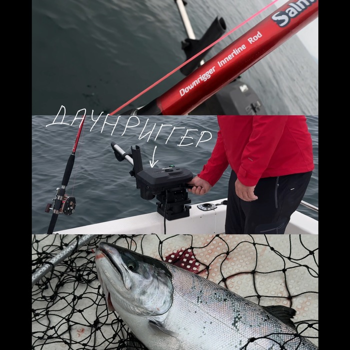 Есть разные варианты расстановки снастей (если интересно, могу больше рассказать про это и схематически нарисовать, как мы обычно выставляем снасти в зависимости от количества удочек на борту и наличия даунриггеров), но самое главное - выставить правильную глубину (там, где ходит рыба, эхолот рисует ее в виде дуг) и сделать нормальный отпуск.