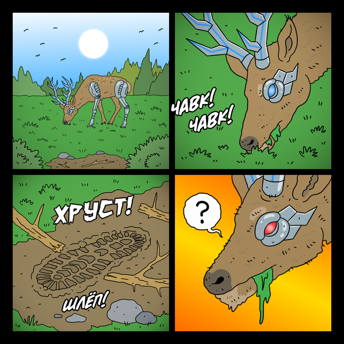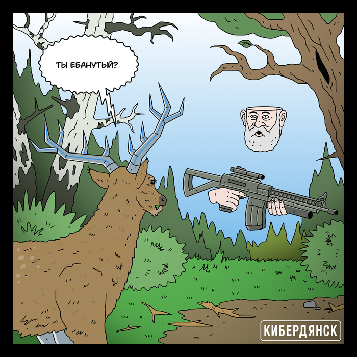 [моё] Юмор Комиксы Авторский комикс Киберпанк Кибердянск Охота Длиннопост Олени Мат