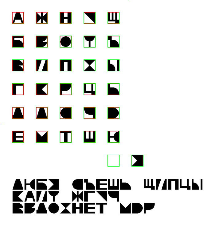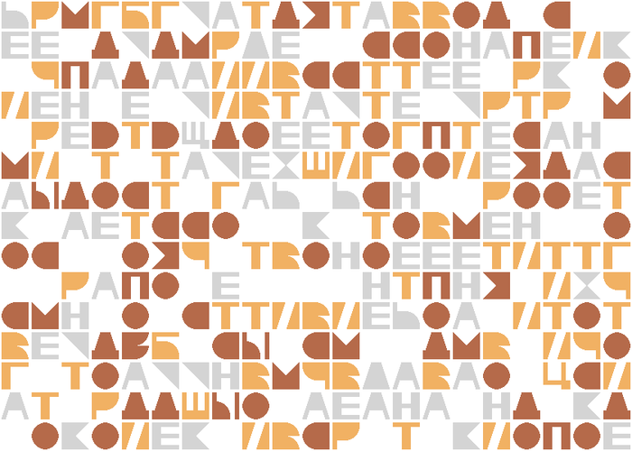 Ну а фоном послужила головоломка, составленная мной по тексту заказчика. Специально для этого случая я набросал в Паинте авангардный геометрический шрифт. Товарищ зритель уже вооружился ножницами?