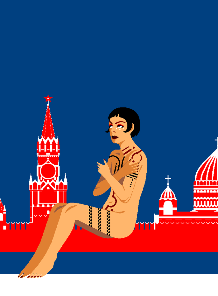 Очертания тела и фона пришлось полностью заменить. Это Спасская башня и Благовещенский собор.