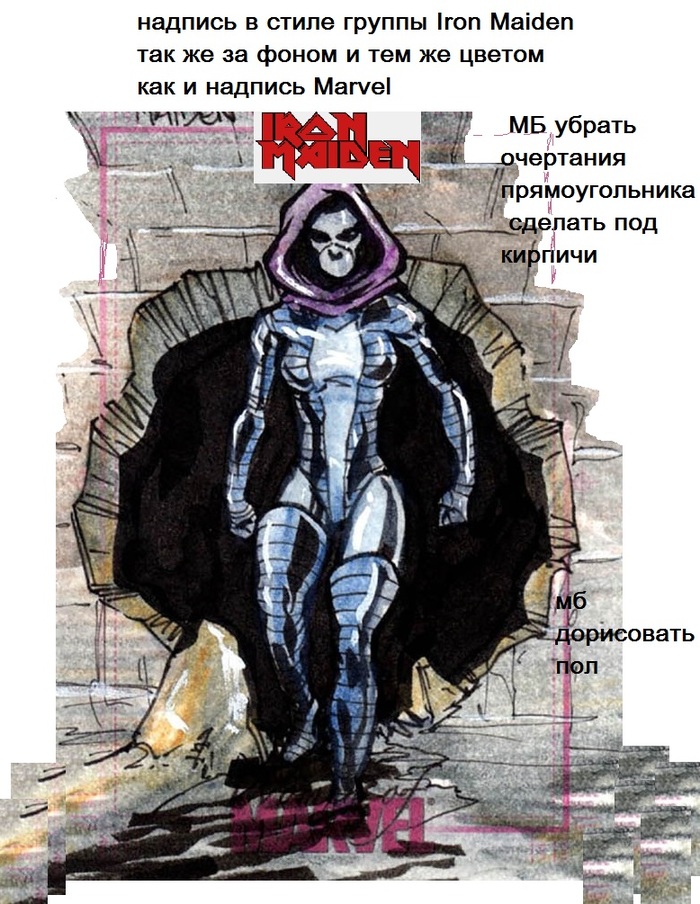 Картинка это зарисовка из комикса, но хотелось бы добавить сверху надпись в стилистке группы айрон мейден и тогда никто не догадается что я задрот по комиксам.