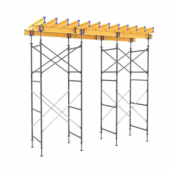 Собирается из готовых рам, похожих на конструкции вышек-тур. Подходит для объектов с типовыми параметрами, но имеет ограничения по высоте и гибкости конфигурации. Чаще используется как вспомогательные конструкции.