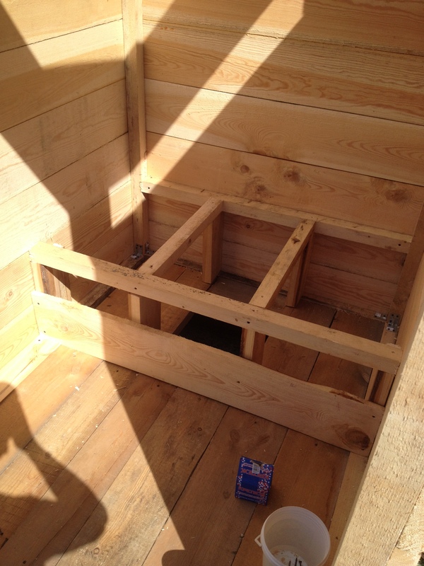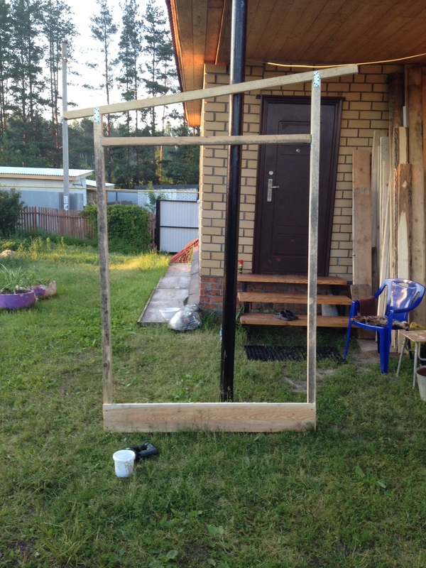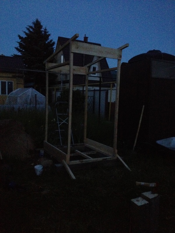 к вечеру поставил два боковых каркаса и соединил между собой. Получился скелетик туалета.