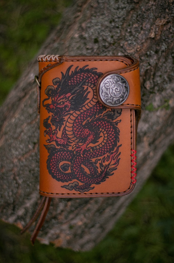 Всем привет! Чот давно не постил сюда ничего, хотя работ накопилось. Самая заметная работа- кошелёк формата «Тракер» с гравировкой и ручной окраской этой самой гравировки