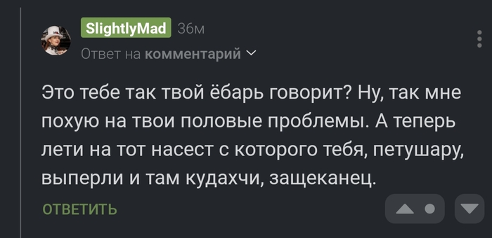 - ЭЭЭ, ты ваще кто такой, ты что тут лезешь, мы не стобой разговариваем, пошёль отсюда нахюй, и так далее. А у меня хулиганское прошлое, я так разговаривать дальше не умею уже, короче, растащили нас по разным углам.
