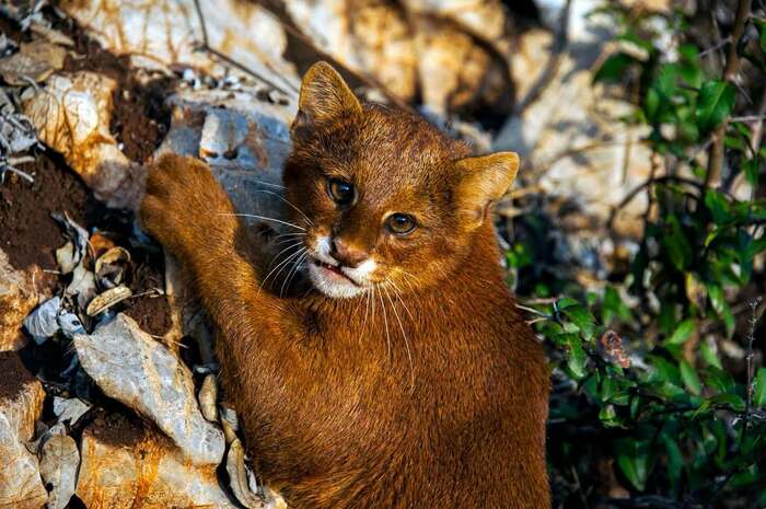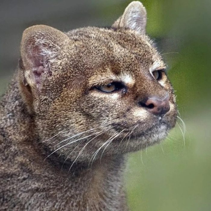 Всё-таки кошачьих. Это ягуарунди – житель Южной и Центральной Америк и братишка пумы – младший, если судить по размерам. Впечатляющими размерами ягуарунди действительно похвастаться не может, ведь едва-едва перерос нашего домашнего кота, имея высоту в холке до 35 см, а максимальный вес в 9 кг.
