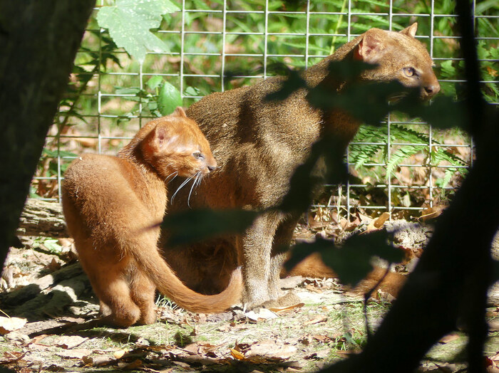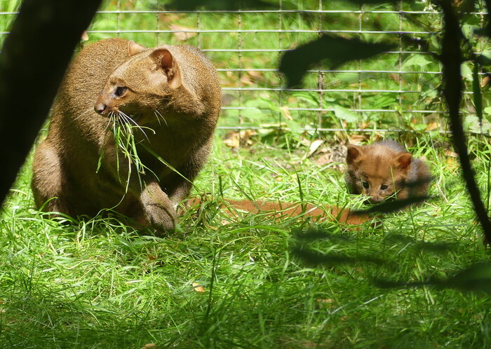 В Новосибирском зоопарке ягуарунди содержатся с 1996 года. Сначала содержались только самцы. В 2000 зоопарком были получены самки. Первые малыши появились на свет в 2001 году. В нашем зоопарке родилось 23 детёныша. Детенышей ягуарунди, рождённых в Новосибирском зоопарке, в разные годы отправляли в российские зоопарки, зоопарки Германии и США. Даже в условиях зоопарка эти кошки довольно скрытны, чаще всего они активны вечером. Терпеливые и наблюдательные посетители могут дождаться редкого момента, когда эти кошки "разговаривают". Ягуарунди делают это редко, при этом звук, который они издают, нетипичен для кошек. Это что-то вроде потрескивания.