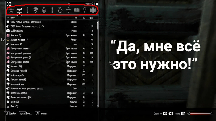 Всем знаком этот «синдром мусорщика». У вас инвентарь ломится от кучи предметов, да так, что вашему персонажу скоро придётся лечить грыжу. И, решившись облегчить жизнь несчастному, вы их продаёте. Ну и, конечно же, в следующем же побочном квесте от вас хотят именно тот выброшенный мусор. Отличным примером послужит Skyrim. Вы таскаете с собой 20 штук «безупречных аметистов» десятки часов. Они тяжёлые, дорогие, но нигде не нужны. Вы их продаёте. И в следующем же городе встречаете NPC, который говорит: «О, странник! Всю жизнь ищу 20 безупречных аметистов!». Занавес. Вы возвращаетесь к торговцу, которому их продали, а он теперь продаёт их по тройной цене. Вы молча выключаете игру. Это правило также распространяется на любые «странные ключи», «записки на непонятном языке» и прочий мусор, который вы с облегчением выкидываете за 5 минут до того, как он вам понадобится.