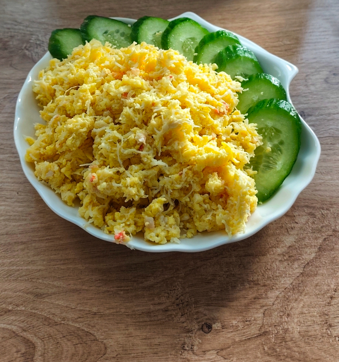 Муж сказал, что раз всем так "понравился" Салат "Адмиральский", надо снять и его фирменную болтунью с крабом под названием "остатки адмиральской роскоши".