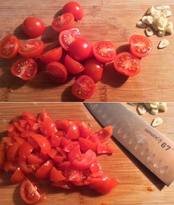 - томаты черри, 8 шт. (не обязательно черри, но ОНИ ВКУСНЕЕ..можно взять 1 обычный крупный помидор..в зависимости от выбора - черри ~160 руб./450 г., обычный ~200 руб./кг)