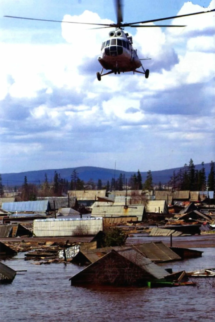 А потом пришёл лёд. Река вздулась настолько, что гигантские айсберги дрейфовали прямо по улицам. Масштаб разрушений оказался просто чудовищным. Три дня вода, поднявшаяся до отметки в 20 метров, держала ленчан в тотальном напряге, а итоговый ущерб перевалил за шесть миллиардов деревянных. Из 27-тысячного населения города пришлось экстренно эвакуировать порядка 24 тысяч человек. От Ленска остались одни руины: стихия выпилила три тысячи одноэтажных домов и более сотни двухэтажек. К сожалению, не обошлось без жертв - в Ленске погибли шесть человек.