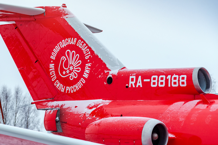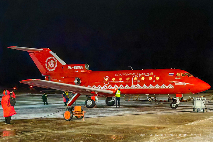Одним из таких самолетов Вологодского АП является Як-40 с бортовым номером RA-88188 покрашенный в ливрею красного цвета.