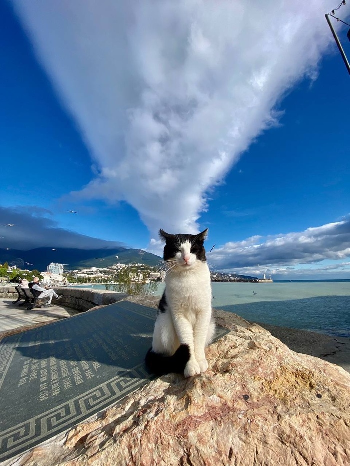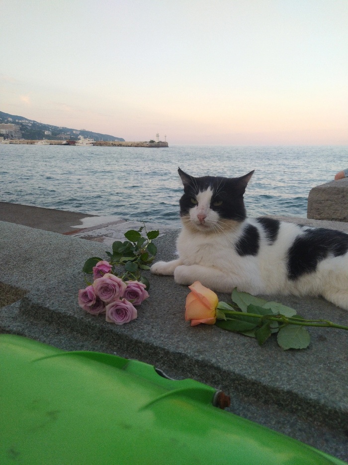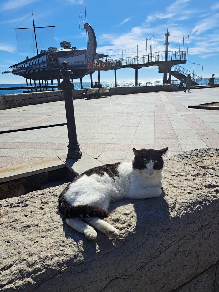Ялтинский котик Тишка - на набережной, говорят рыбов показываете?