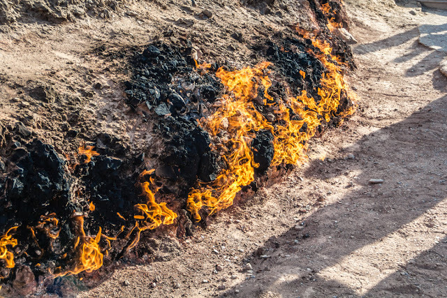 Горит в недрах не только уголь, но и природный газ. Самый известный такой очаг находится недалеко от аула Дарваза в Туркменистане. Сия достопримечательность даже получила персональное название в туристических справочниках — Врата ада.