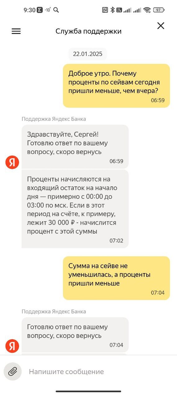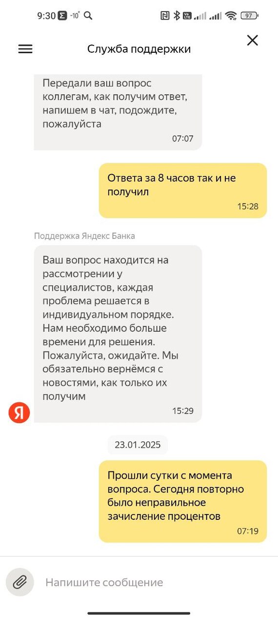 Яндекс-банк неверно начисляет проценты, а поддержка 3 недели отписывается