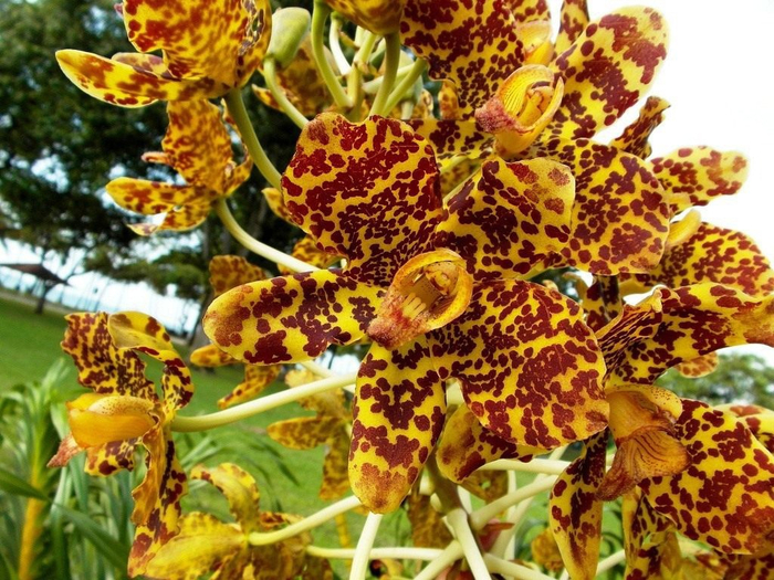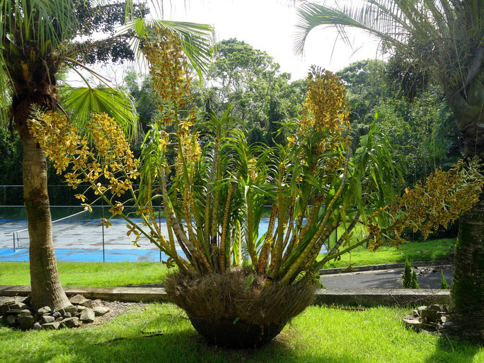 Грамматофиллум великолепный (Grammatophyllum speciosum) — полная противоположность платистеле. Это крупнейшая орхидея мира, занесённая в Книгу рекордов Гиннесса. Рекордный экземпляр в Ботаническом саду Сингапура весит 2 тонны, имеет диаметр 5 метров и высоту во время цветения 7.62 метра.
