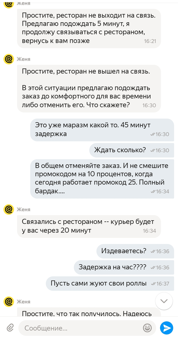 Но услуги доставок стали дешёвые и широко доступны. И в таком случае что же вы хотели? Да, дешевая цена означает низкое качество. Увы.