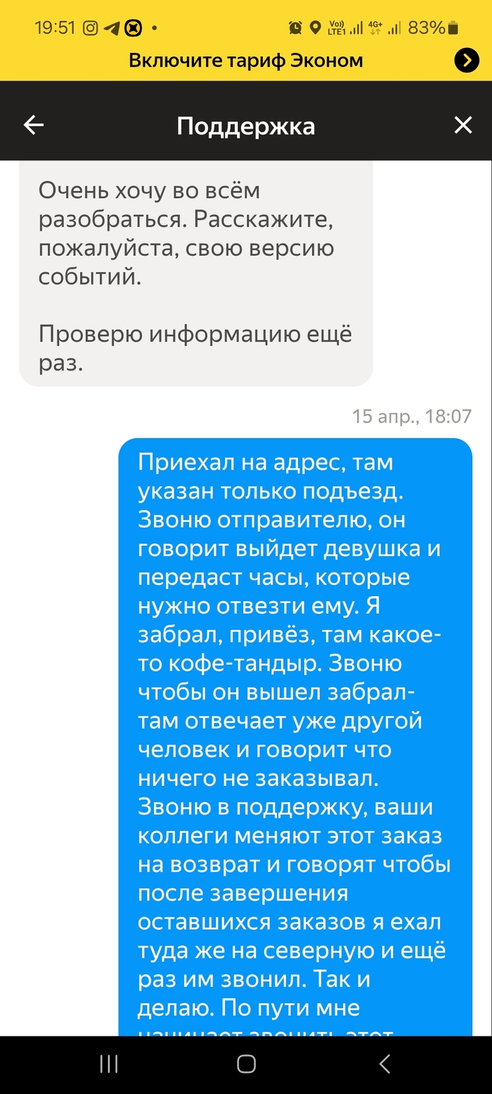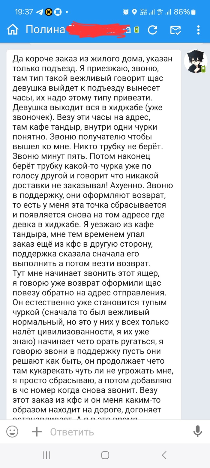 Само собой разумеется, удешевление услуг и набор всех подряд (в том числе в поддержку) приводит к снижению качества. И да, бывает вижу как среди коллег появляются люди, которым не следовало бы вообще заниматься доставкой. Не удивляюсь ни тому, что кто то присвоил посылку (не подумав о последствиях), вымогал чаевые (хотя чаевые--это очень небольшая часть дохода, вообще незначительная, которую получить приятно, но скорее как "трофей", не более), явился грязным или вообще не разговаривает и не может объясниться ни со службой поддержки ни с клиентом никак. И даже почти не умеет пользоваться даже основными функциями приложения и за него в ресторане кнопки в его смартфоне нажимают девчонки работающие на выдаче (видел я и такое). Хотя основная масса настоящих курьеров не таковы, конечно.