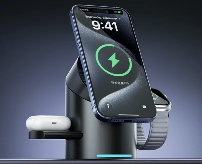 Элегантная док-станция, которая заменяет сразу три зарядки. Одновременно заряжает смартфон, беспроводные наушники и смарт-часы. Совместима со всеми устройствами, поддерживающими стандарт Qi2, обеспечивает быструю и безопасную зарядку. Идеально подходит для дома или офиса, позволяя избавиться от беспорядка с кабелями.