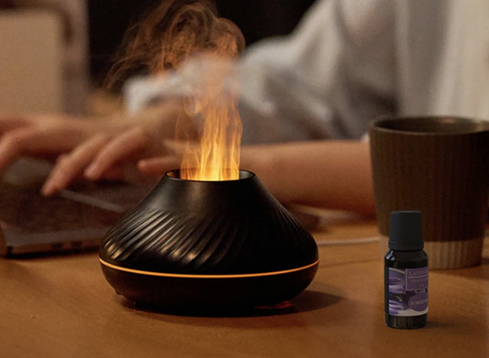 Аромадиффузор с уникальным эффектом «горящего огня». Работает на основе ультразвуковой технологии, создавая тонкий аромат и увлажняя воздух. Компактный объем 130 мл подходит для спальни, офиса или гостиной. Светодиодная подсветка превращает его в стильный элемент интерьера.